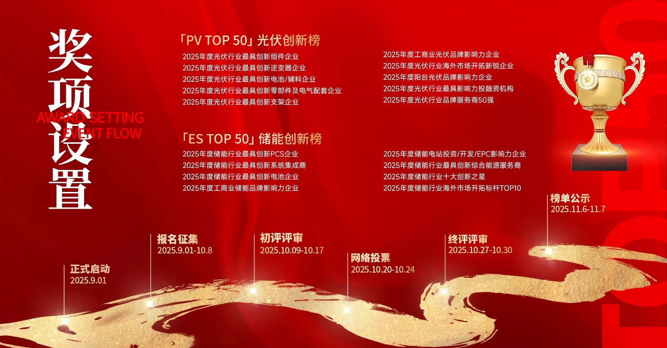 “「PV TOP 50」&「ES TOP 50」2025光儲創新榜”評選活動正式啟幕!